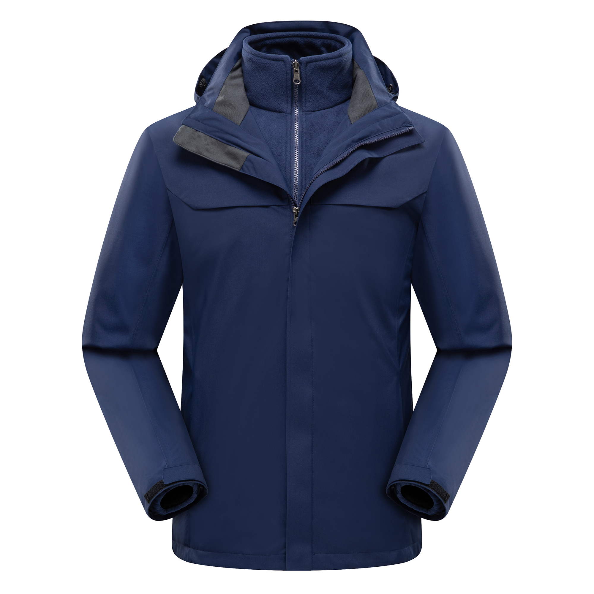 首先,面料選擇至關(guān)重要。沖鋒衣作為戶外運動的必備裝備,其面料需具備防水、透氣、耐磨等特性。在定制時,應(yīng)優(yōu)先考慮戶外專業(yè)防水面料,同時確保面料具有良好的透氣性能,以避免長時間穿著導(dǎo)致的悶熱不適?12。